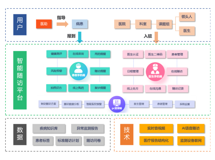 天坦智能開發(fā)的慢病管理運營服務(wù)是一套完整的心血管隨訪標(biāo)準(zhǔn)體系,配合適用性極強的醫(yī)生端可配置界面,滿足絕大多數(shù)開展冠心病介入的醫(yī)療機構(gòu)需求,同時,基于專家隨訪團(tuán)隊之間的協(xié)作,建立上下聯(lián)動的醫(yī)生互動機制,為隨訪的患者提供專業(yè)的管理方案。匹配有人工智能為核心的隨訪管理機制,可自動化發(fā)送患者所需要信息,量表等隨訪內(nèi)容,具備機器學(xué)習(xí)功能,針對不同醫(yī)院形成不同模式的隨訪系統(tǒng)配置,匹配個性化的醫(yī)院隨訪體系,最終以患者交流平臺,建立以患者需求為中心的線上服務(wù)體系,包括專家線上咨詢、藥品直送、可穿戴式設(shè)備居家監(jiān)護(hù)、護(hù)理居家康復(fù)及圍繞手術(shù)全周期的保險支付產(chǎn)品。形成以醫(yī)學(xué)+智能+個性化+支付功能為一體的新一代的慢病管理平臺。